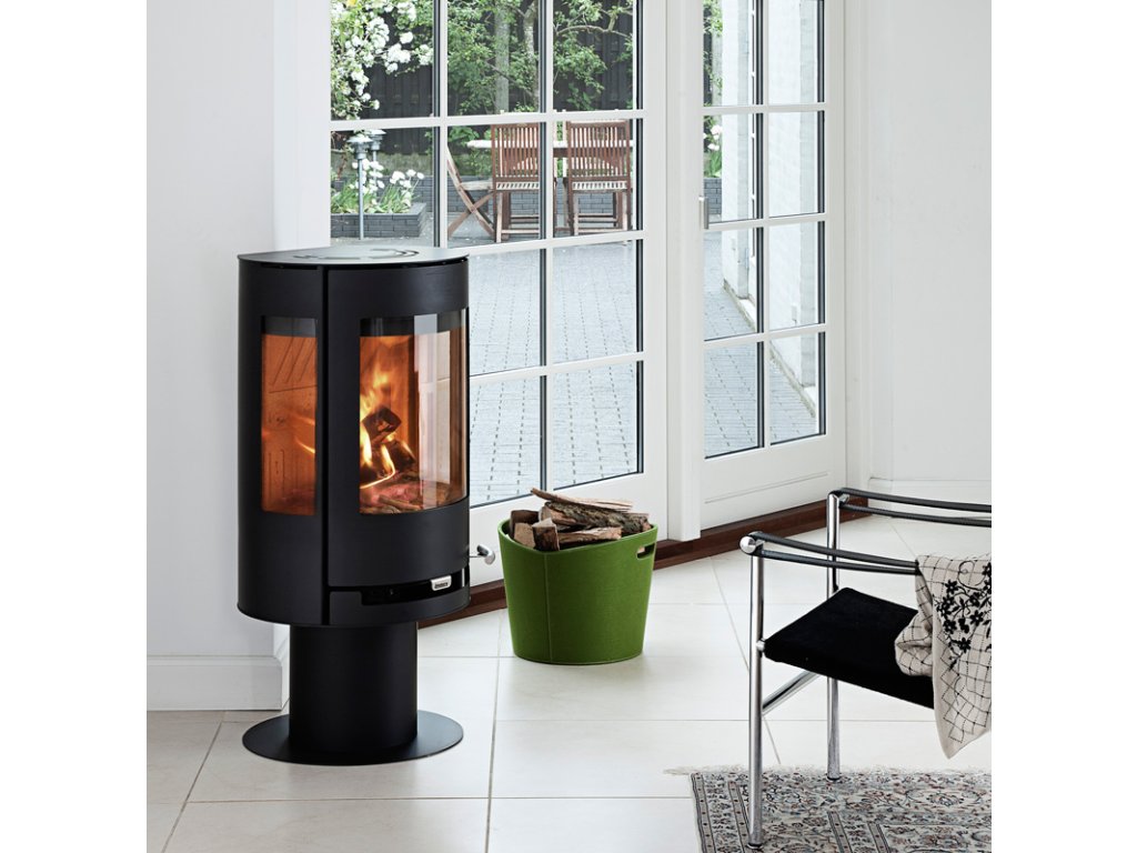 ORIGINáL JE JENOM JEDEN - kulatá konvekční krbová kamna Aduro 9-3 vychází ze základního modelu Aduro 9, kterému se odstranil spodní vysouvací zásobník a spalovací komora je postavena na piedestalu, či tzv. "kuří nožce", což krbová kamna zvětšuje a pocitově zužuje. Kamna mají na obou stranách spalovací komory velké prosklené otvory, které zajišťují maximální možnost pohledu na krásnou hru plamenů doslova ze všech stran. Oba boční skleněné průzory mají své vlastní oplachy (sklo dvířek samozřejmě také), které zajišťují maximální možnou čistotu obou bočních skel a jsou podle potřeby regulovatelné.