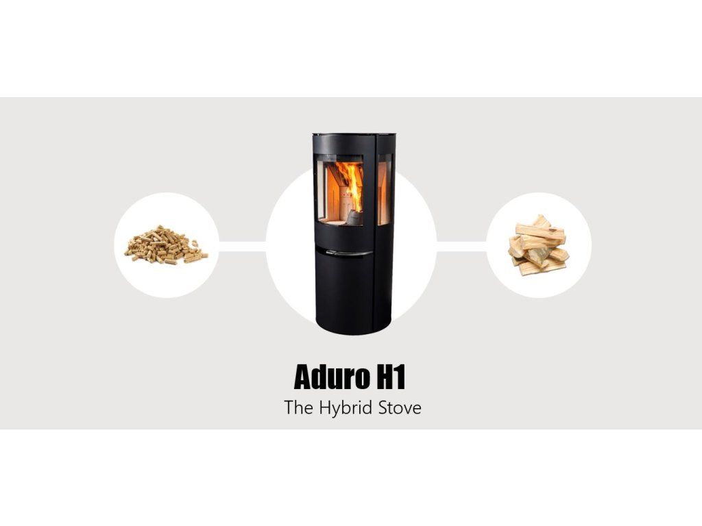 ADURO H1 = HYBRIDNí KAMNA NA DŘEVO A PELETY!Aduro H1 můžete používat stejně jako normální kamna Aduro na dřevo s regulátorem Aduro-tronic. Chcete-li ovšem přijet do vyhřátého domova když není nikdo doma, pak si můžete kamna naprogramovat a ta se automaticky spustí na spalování peletek než přijedete.
