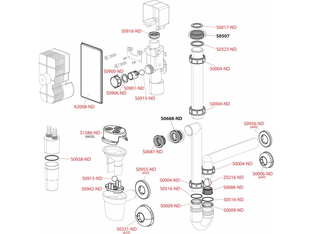 - Nálevka s kuličkou pro odkapávající kondenzát a držákem hadiček DN32