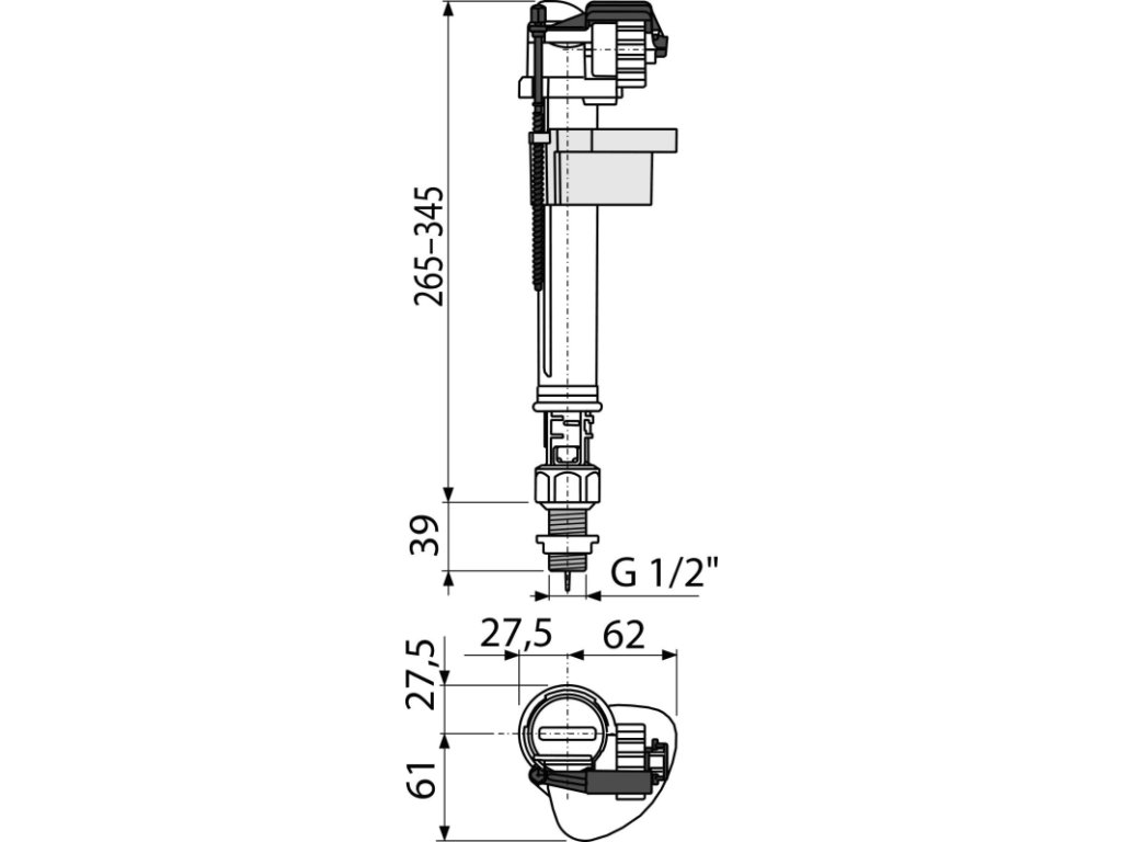 Konstrukce umožňuje seřízení optimální výšky ventilu dle výšky nádržky
