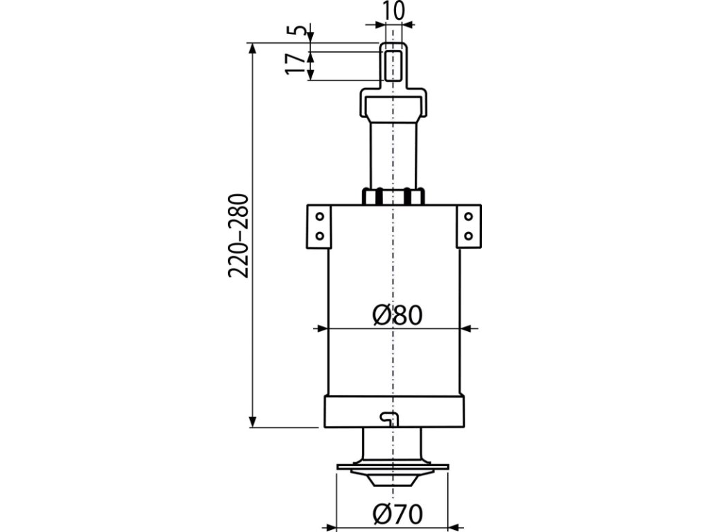 Konstrukce umožňuje seřízení optimální výšky ventilu dle výšky nádržky