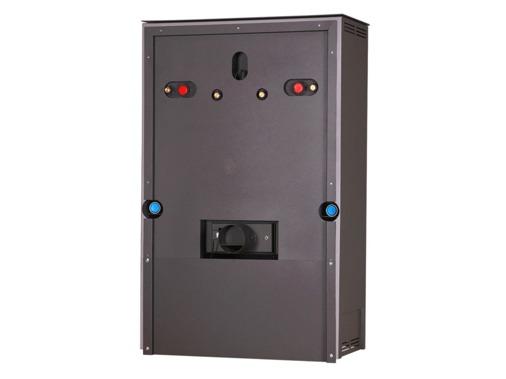- Bez šamotová technologie - díky absenci šamotové vyzdívky dochází k plošnější předávce tepla do výměníku a zvýšení efektivity ohřevu vody.
