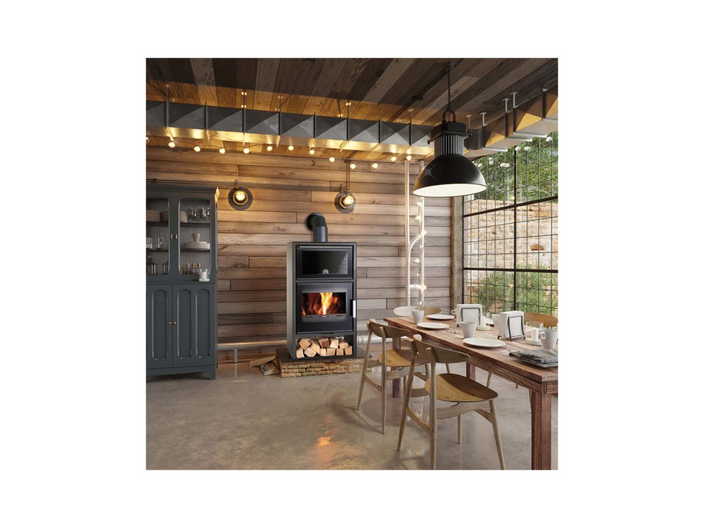 Potěšení smyslů. Takové je spojení praskání dřeva, pohled do ohně a vůně pečeně z trouby. Jednoduchý design, topeniště, kam se vejdou i 50cm polena a trouba s roštem. V dolní části oceníte prostor na složení dřeva.