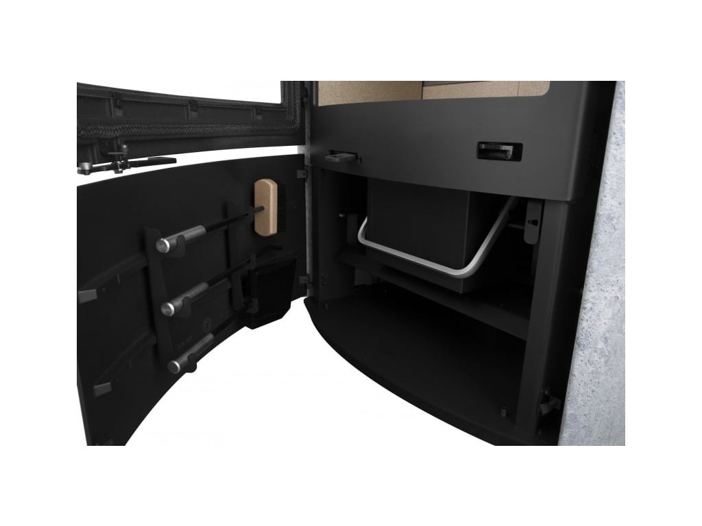 Společnost Heta vyvinula unikátní řešení provedení popelníku u krbových kamen a to tak, že popelník má objem 5 litrů a je utěsněn pomocí vodorovné páky, tedy jedná se o bezprašné řešení.