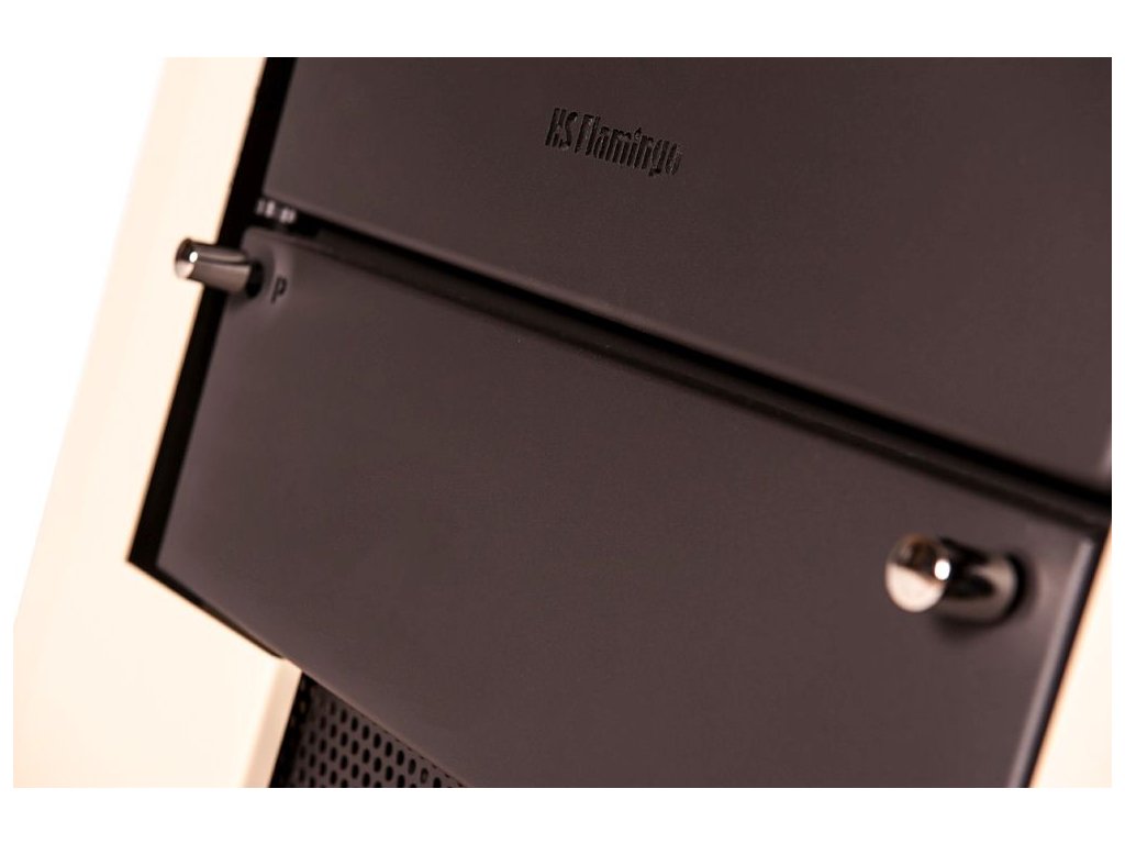 Komora je konstruovaná tak, aby byla dosažena vysoká účinnost a malá spotřeba paliva, která činí průměrně 2,5 kg na hodinu. Spalovací komora je vyrobená ze silného ocelového plechu a pro dokonalejší spalování je vysázena pravým šamotem. Sekundární spalování, krásně čisté sklo a externí přívod vzduchu je u kamen Flamingo samozřejmostí. Kamna jsou vyrobená z kvalitních materiálů a díky tomu Vám můžeme poskytnout záruku 5 let.