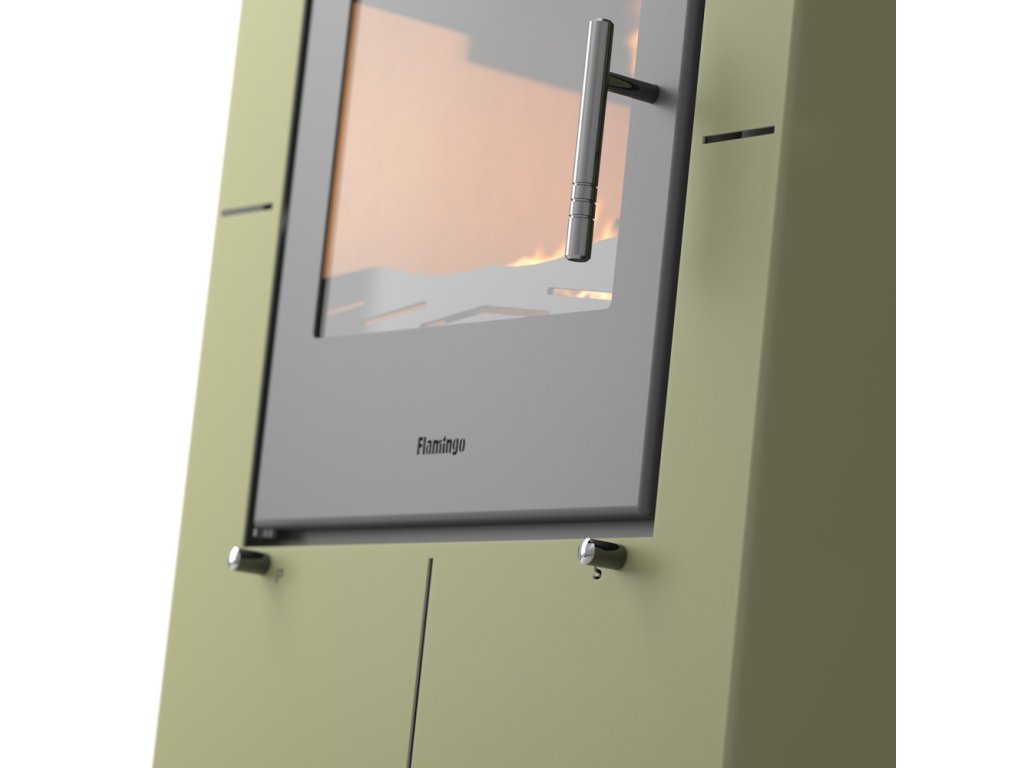 Komora je konstruovaná tak, aby byla dosažena vysoká účinnost a malá spotřeba paliva, která činí průměrně 2,5 kg na hodinu. Spalovací komora je vyrobená ze silného ocelového plechu a pro dokonalejší spalování je vysázena pravým šamotem. Sekundární spalování, krásně čisté sklo a externí přívod vzduchu je u kamen Flamingo samozřejmostí. Kamna jsou vyrobená z kvalitních materiálů a díky tomu Vám můžeme poskytnout záruku 5 let.