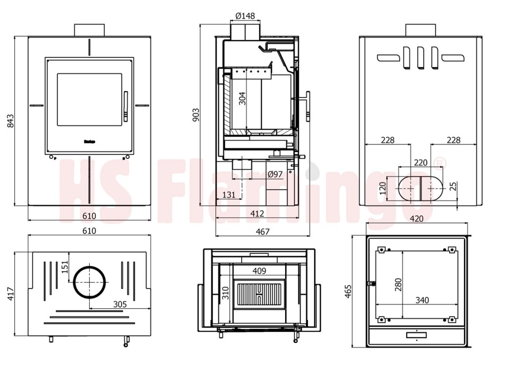 Rozměr topeniště (Š x V x H): | 405 x 280 x 310 mm |