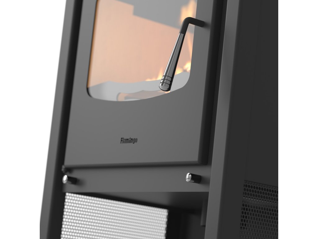 Komora je konstruovaná tak, aby byla dosažena vysoká účinnost a malá spotřeba paliva, která činí průměrně 2,5 kg na hodinu. Spalovací komora je vyrobená ze silného ocelového plechu a pro dokonalejší spalování je vysázena pravým šamotem. Sekundární spalování, krásně čisté sklo a externí přívod vzduchu je u kamen Flamingo samozřejmostí. Kamna jsou vyrobená z kvalitních materiálů a díky tomu Vám můžeme poskytnout záruku 5 let.