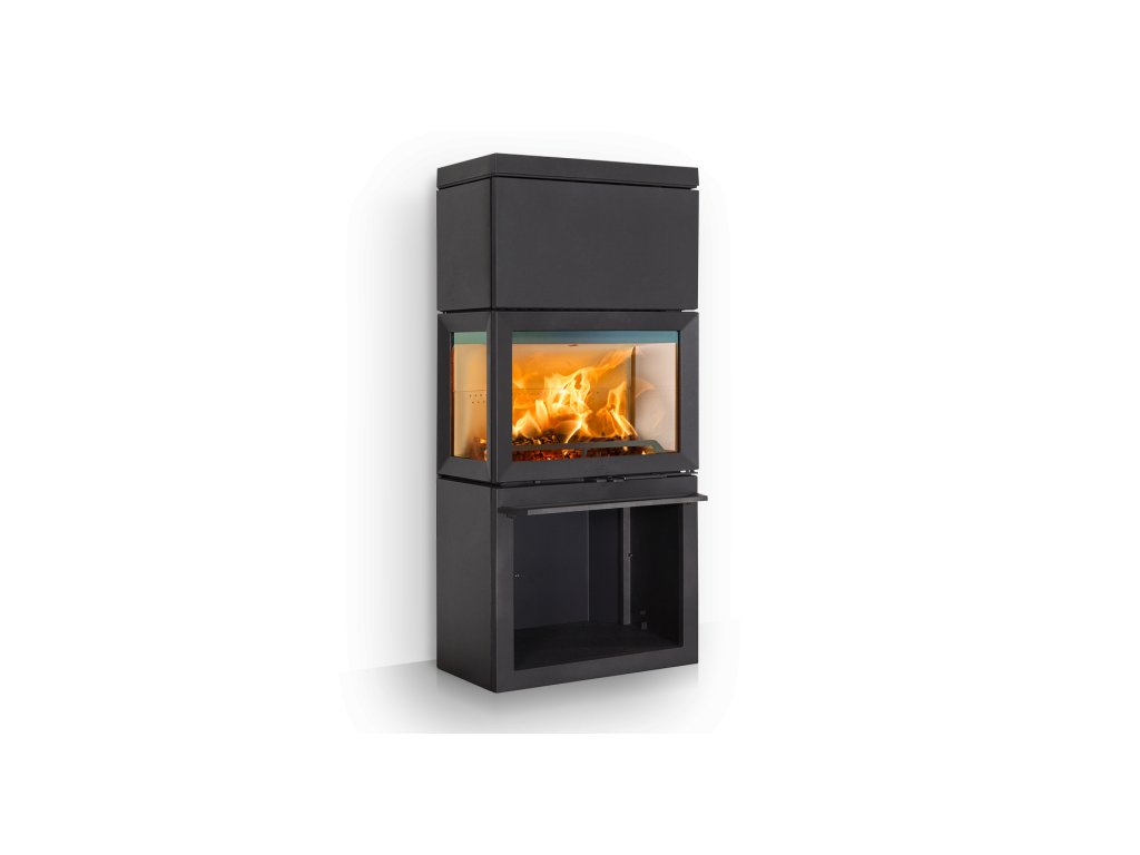 Díky vnitřnímu obložení topeniště bíle smaltovanými pláty kamna září, i když se v nich zrovna netopí. V jejich podstavci se ukrývá praktický Úložný prostor na dřevo.
