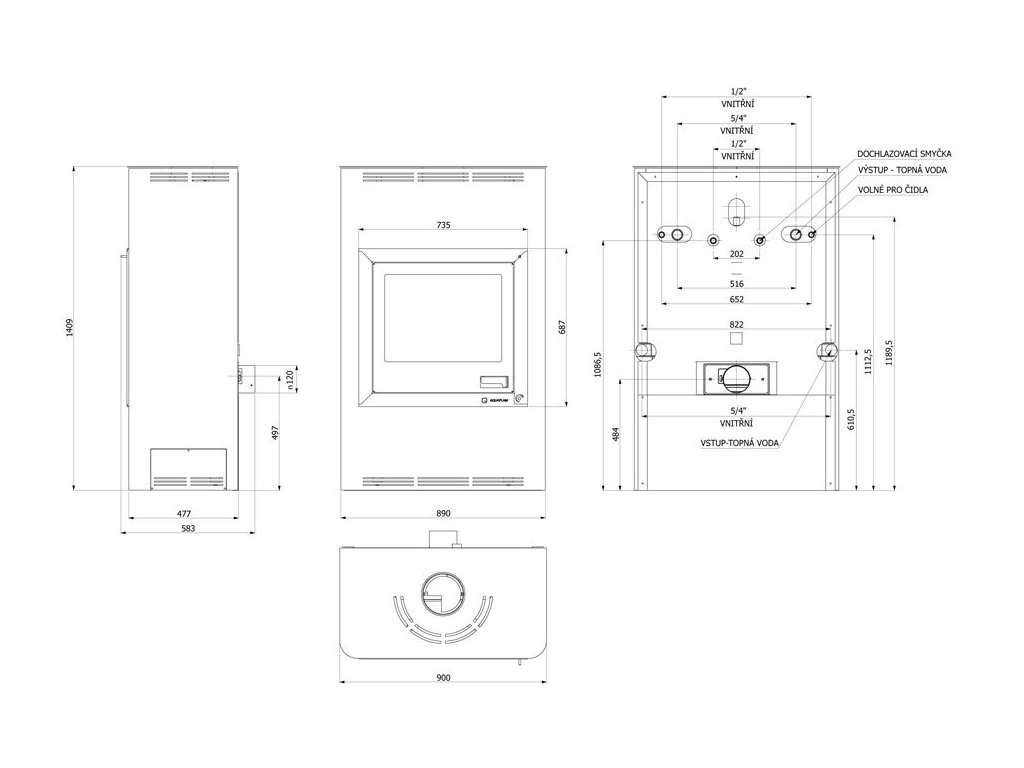 Typ kamen: | teplovodní - dvouplášťová, konvekční |