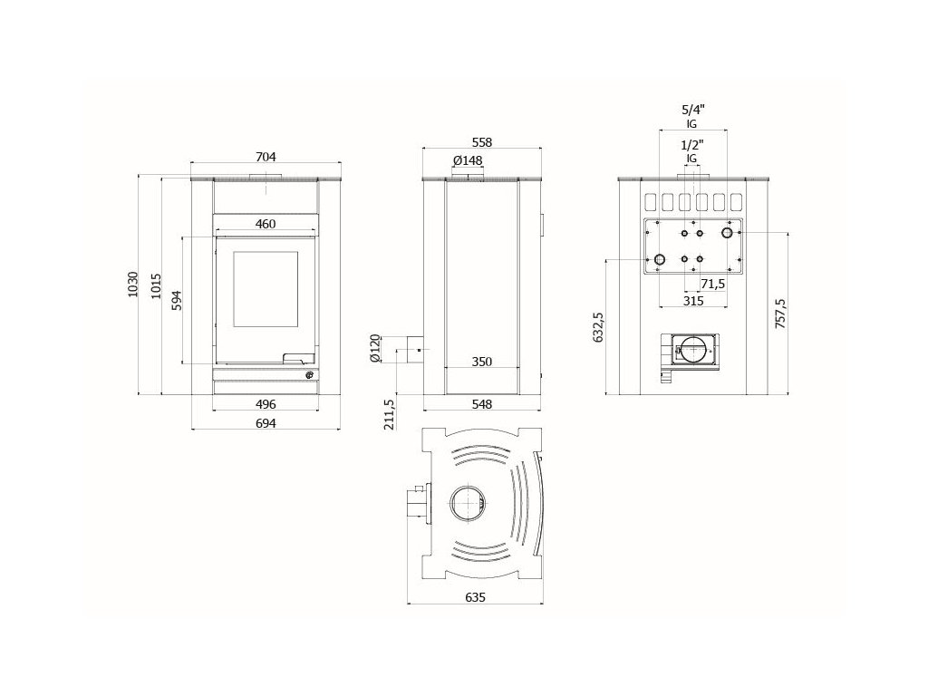 Vývod spalin: | 150 mm |