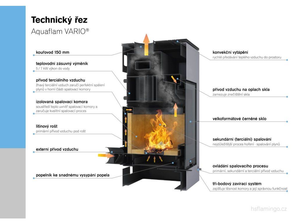 Hlavní výhody krbových kamen AQUAFLAM VARIO LEND
