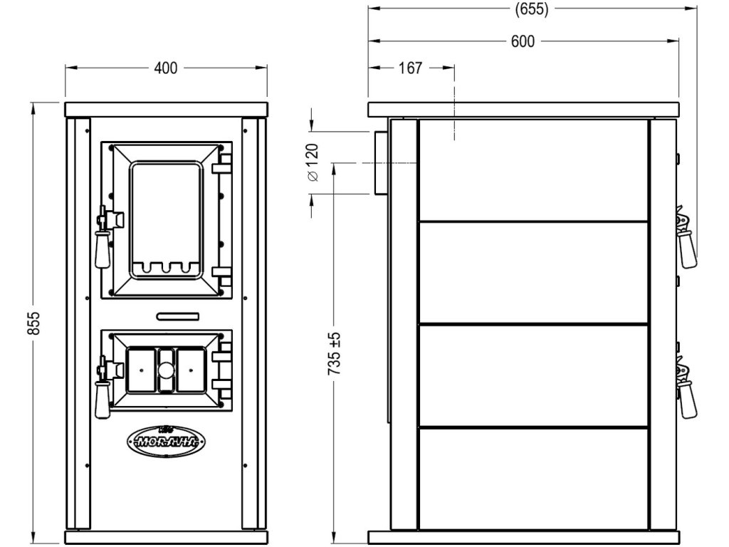 Kamna KVS MORAVIA typ 9190 Simon jsou konstruovaná na spalování pevného paliva, jako jsou dřevo a dřevěné brikety.