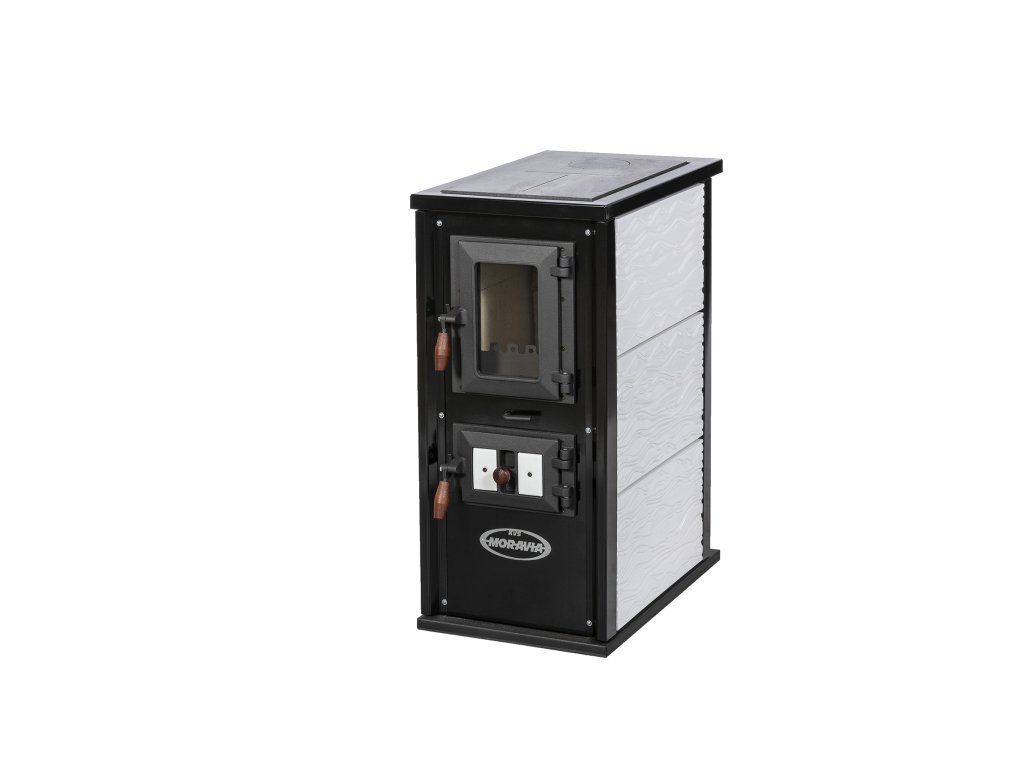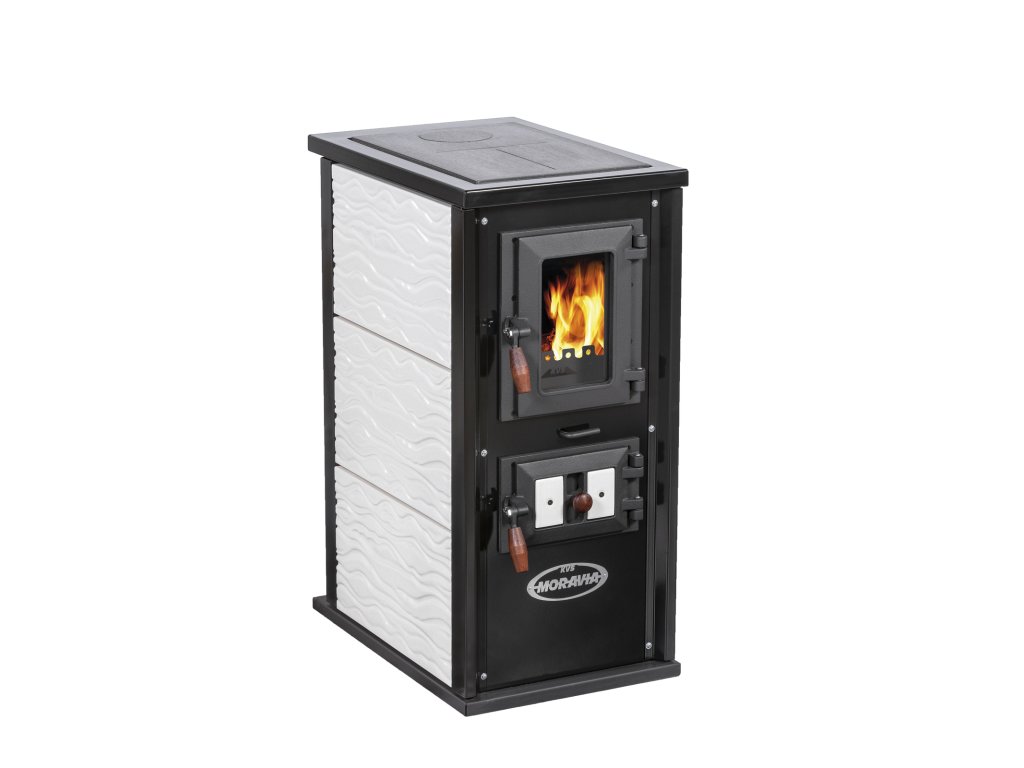Tento typ propojuje výhody krbových kamen a sporáku, protože kromě vaření a vytápění okouzluje tím, že je možné vidět i plápolající oheň přes prosklená dvířka topeniště. Materiály použité při výrobě tohoto typu jsou podobné ve srovnání s ostatními typy spotřebičů KVS MORAVIA.