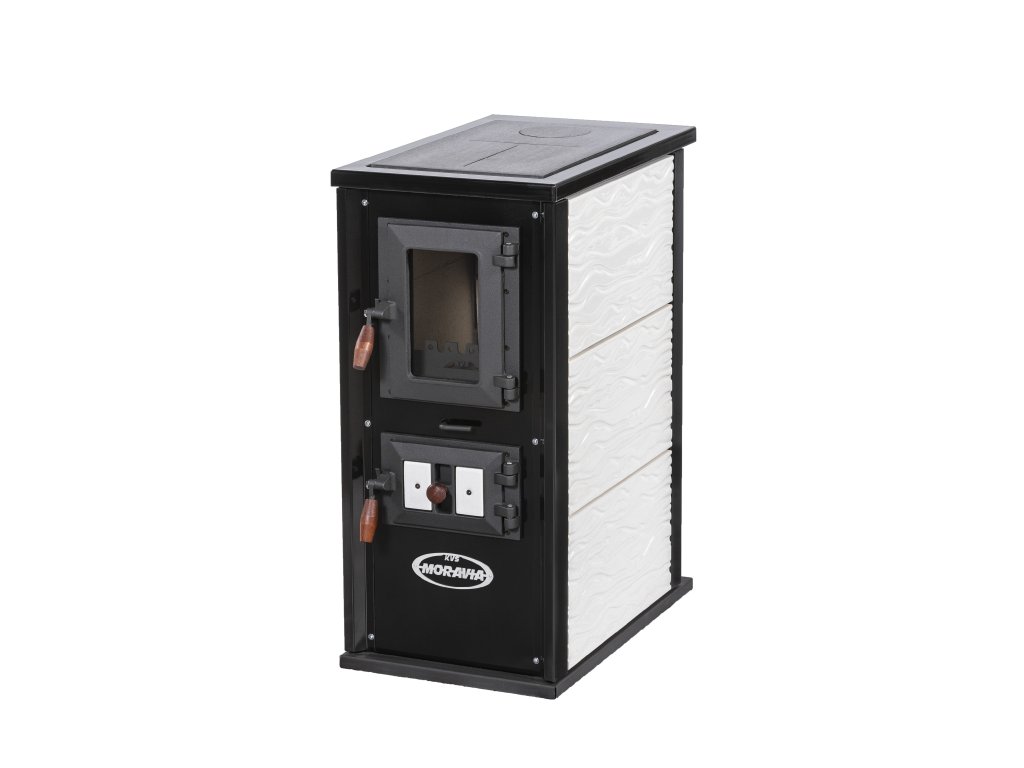 Tento typ propojuje výhody krbových kamen a sporáku, protože kromě vaření a vytápění okouzluje tím, že je možné vidět i plápolající oheň přes prosklená dvířka topeniště. Materiály použité při výrobě tohoto typu jsou podobné ve srovnání s ostatními typy spotřebičů KVS MORAVIA.