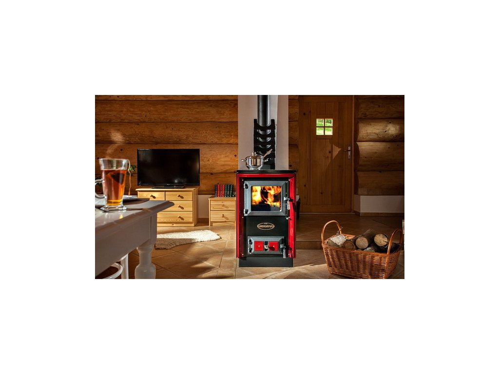 Tento typ propojuje výhody krbových kamen a sporáku, protože kromě vaření a vytápění okouzluje tím, že je možné vidět i plápolající oheň přes prosklená dvířka topeniště. Materiály použité při výrobě tohoto typu jsou podobné ve srovnání s ostatními typy spotřebičů KVS MORAVIA.