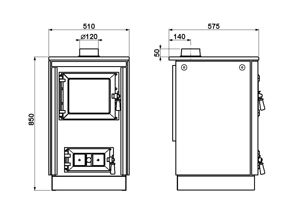 - Napojení na komín z plotny otvorem o průměru 120 mm
