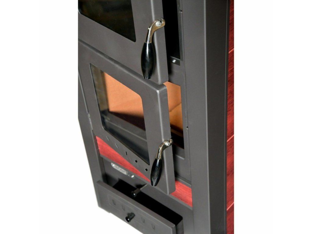Součástí je i praktická samostatná nádoba na popel pro snadné vyprazdňování zbytků po spalování. Kamna mají pohyblivý rošt a prostorná spalovací komora umožňuje vložit polena o délce cca 45 cm. Oddělený přívod primárního a sekundárního vzduchu zajišťuje optimální energetický výnos. Kamna jsou pečlivě utěsněna. Pec lze velmi rychle zahřát na provozní teplotu.
