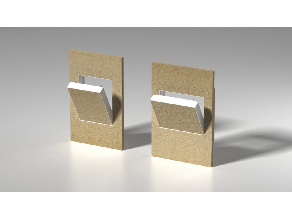- Samostatná dvířka s izolační deskou se vkládají opřením do spodní části rámu a zacvaknutím do zámečku v horní části rámu.