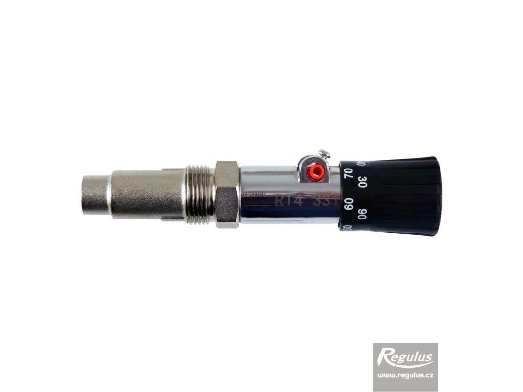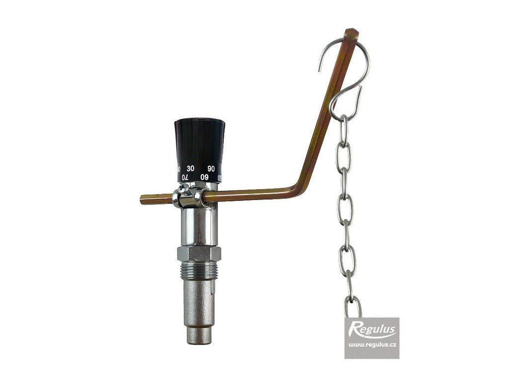 Regulátor tahu pro kotle na tuhá paliva. Reguluje výstupní teplotu pracovní kapaliny ze zdroje na hodnotu nastavenou knoflíkem