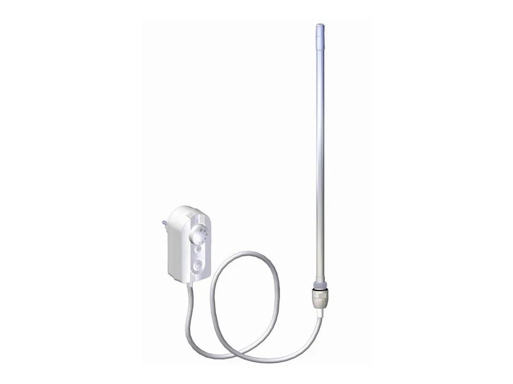 Elektrické topné těleso s regulátorem prostorové teploty, programem sušení a síťovou vidlicí se spínačem se připojuje do zásuvky. Regulátorem prostorové teploty lze nastavit teplotu v místnosti od 5°C do 30°C.