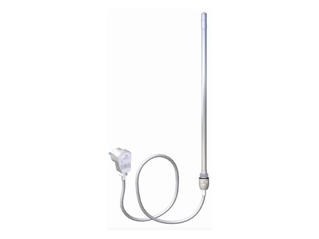 Elektrické topné těleso se spínačem a síťovou vidlicí se připojuje do zásuvky.