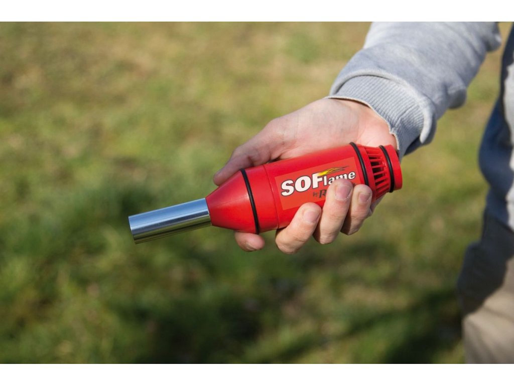 SOFlame je plynový zapalovač připojený k ventilátoru. Díky dlouhému krčku umožňuje bezpečně zapálit oheň v krbu nebo grilu. Má nastavitelnou velikost plamene, stejně jako dětskou pojistku. Druhou užitečnou funkcí SOFLame je dmychadlo jako pomocník při rozhoření. Použití ventilátoru je velmi jednoduché. Je napájen dvěma bateriemi AA.